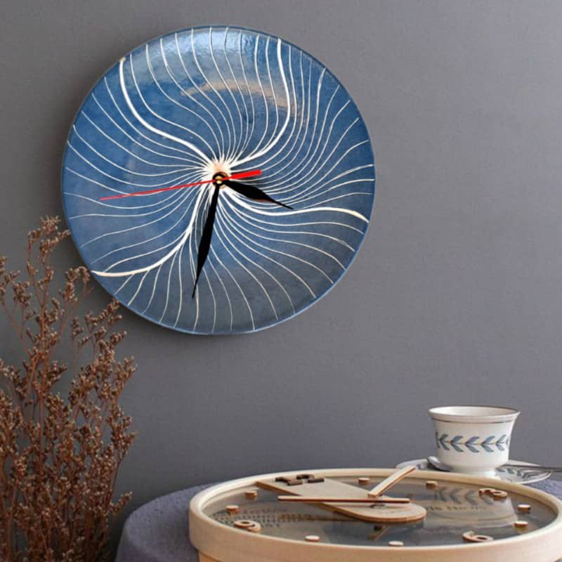 ساعت دیواری دست ساز سرامیکی نارسیس، تک نسخه طرح آبستره رنگ منحصر به فرد تکرار ناپذیر و تصادفی کد n1.clock
